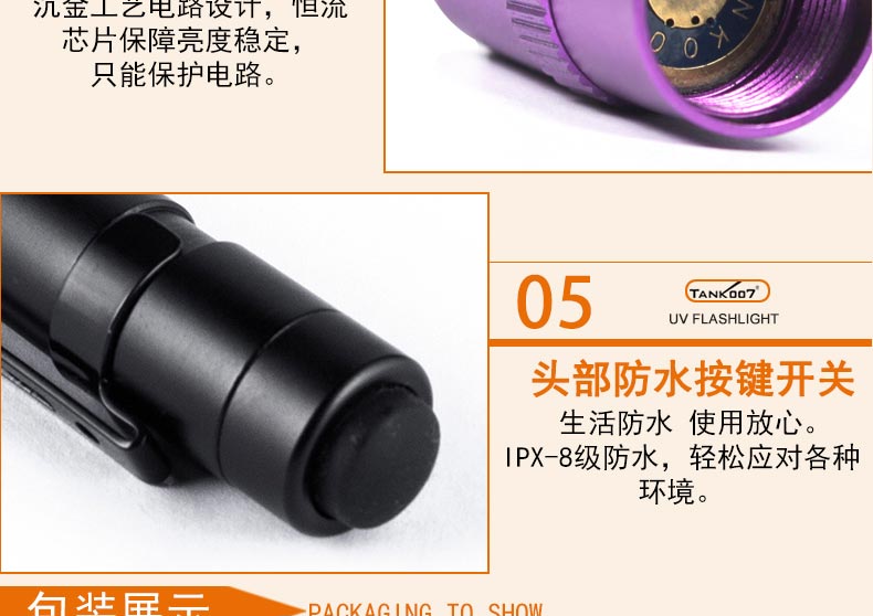 TANK007探客UV02筆帽式迷你UV紫外線手電筒