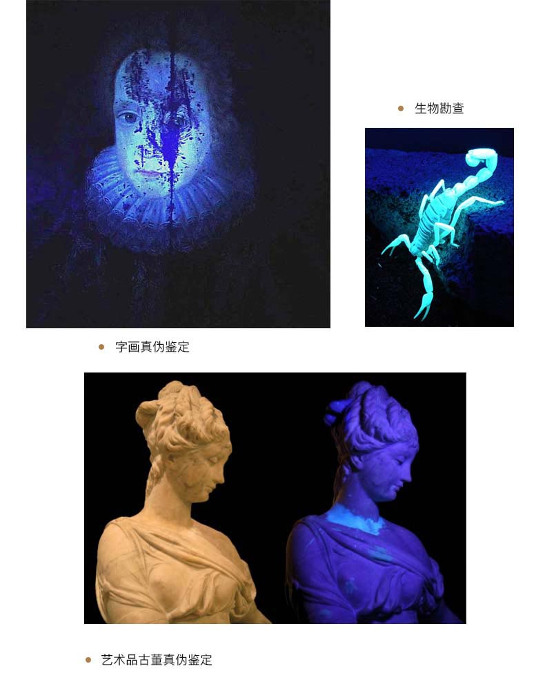 可檢測各種防偽標識與證件,可應用特殊物質的熒光反射、生物研究、獵奇尋寶、尋找特殊礦物質等等