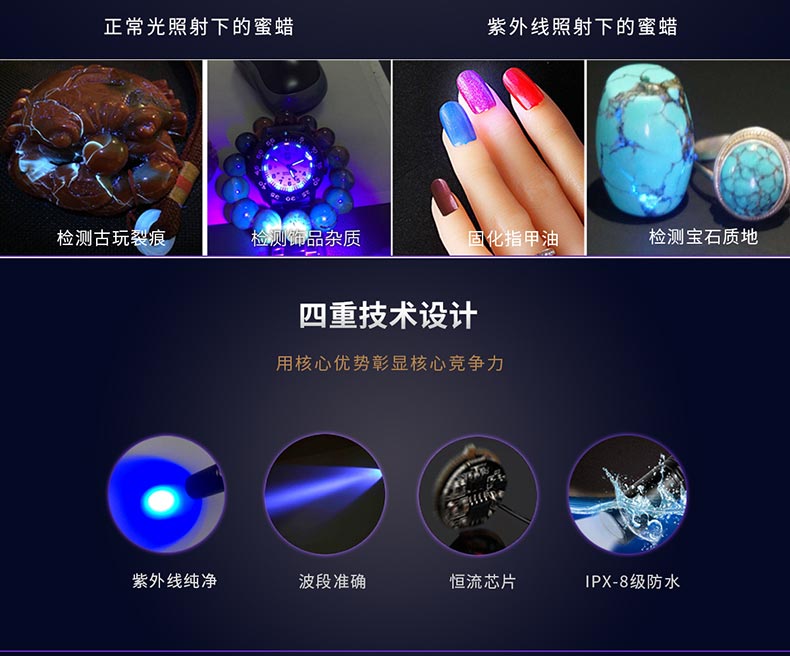UVTK566古玩文物玉器鑒定紫外線手電筒