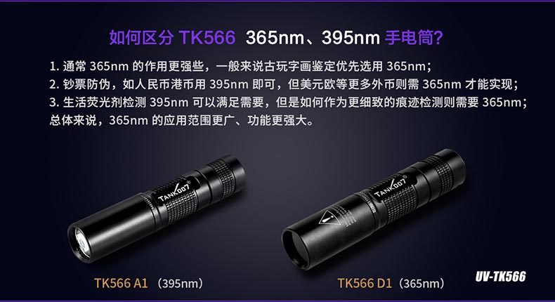 TANK007探客UV-TK566古玩鑒定/珠寶鑒賞紫外線手電筒